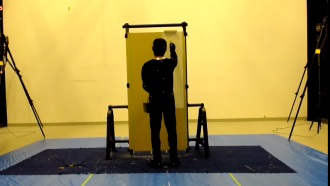 本研究では,塗装の熟練技能工の技術伝承に資するために,ローラーブラシによる上下方向の往復塗装動作の分析を目的とする.ローラーブラシは,比較的広範囲を一面塗装する際に使用する一般的な塗装道具である.上下方向の往復運動は,実場面でのローラーブラシ塗装において頻繁に見られる動作の一つである.作業中の立ち位置は移動せず,下肢の屈伸等全身を使う上下方向の動作のみのため,個人差が少なく,塗装者共通の基本的な動作の特徴を抽出するのに適していると考えた.特定の身体部位に着目した詳細な動作分析に新規性があると考えている.ここでは操作者が意識しやすい塗装時の手の位置と手の速度・加速度との関係を明らかにして,初心者教育の資料とすることを目的とする.