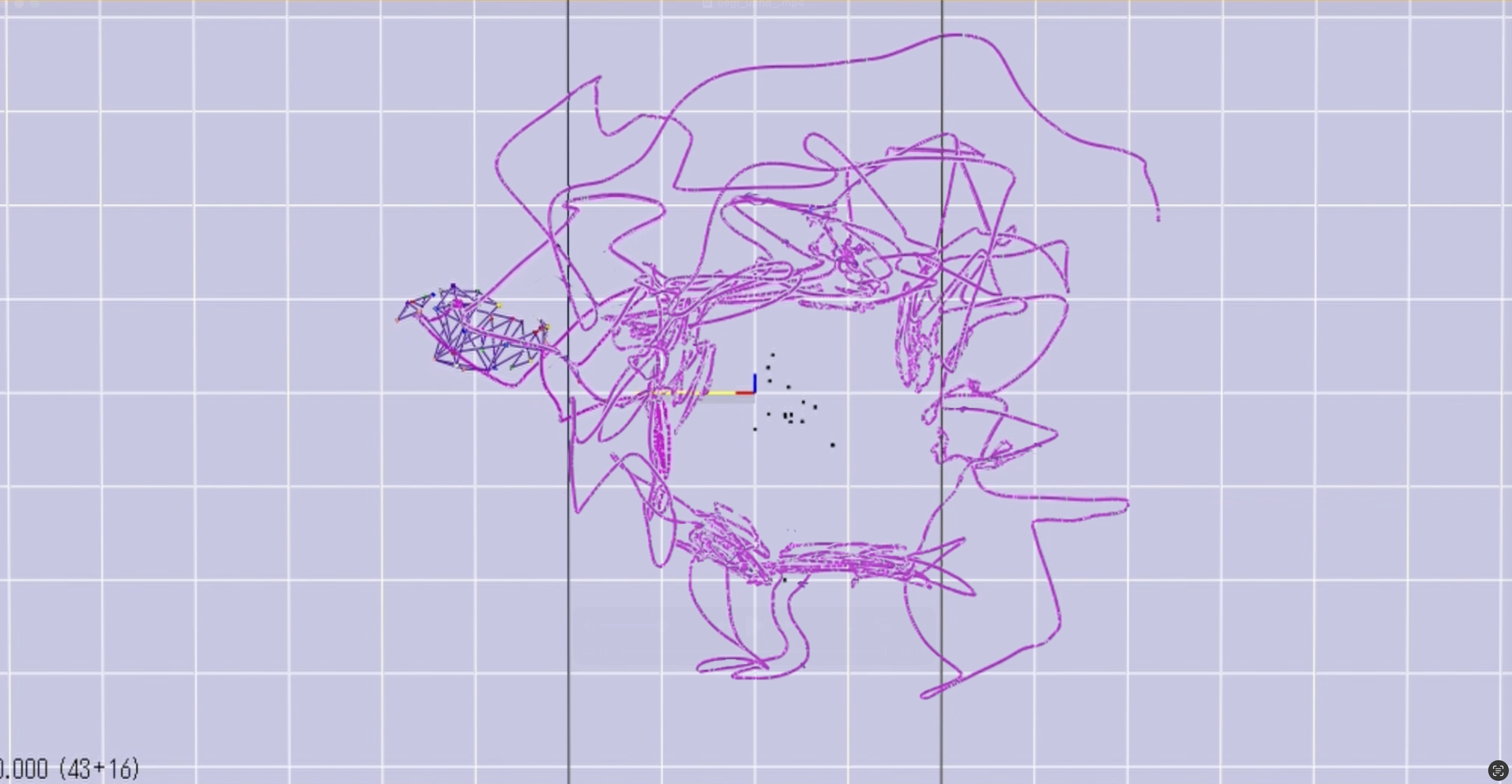 左官作業を学ぶ中で、熟練者からよく言われるアドバイスの一つが「もっと身体全体を使って」という言葉です。しかし、初心者にとっては、その意味が具体的にどういう動きなのか分かりづらく、「そう言われても…」と感じることも少なくありません。 そこで今回は、光学式モーションキャプチャ(MC)を活かし動作分析を通して熟練者の動きがどのようなものかを可視化し、「身体全体を使う」とはどういうことなのかを探ってみました。 四角形の形をした型枠にモルタルを打設し、ならす作業を行いました。今回の分析では視点を上部からに固定し、かつ頭頂部の動きの軌跡をプロットした動画を見てみましょう。