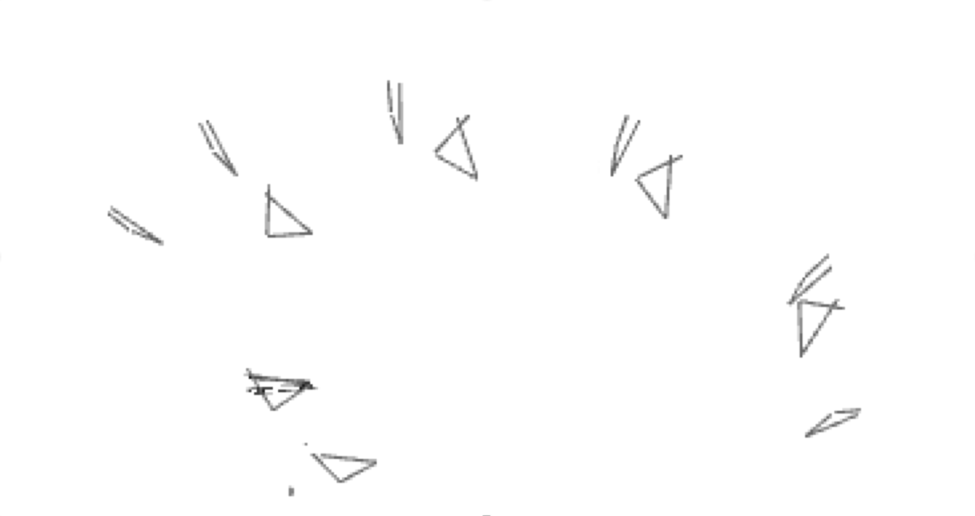 作業者を天井から見下ろす位置を視点(カメラ位置)とした三角形の軌跡は以下のようになります。
