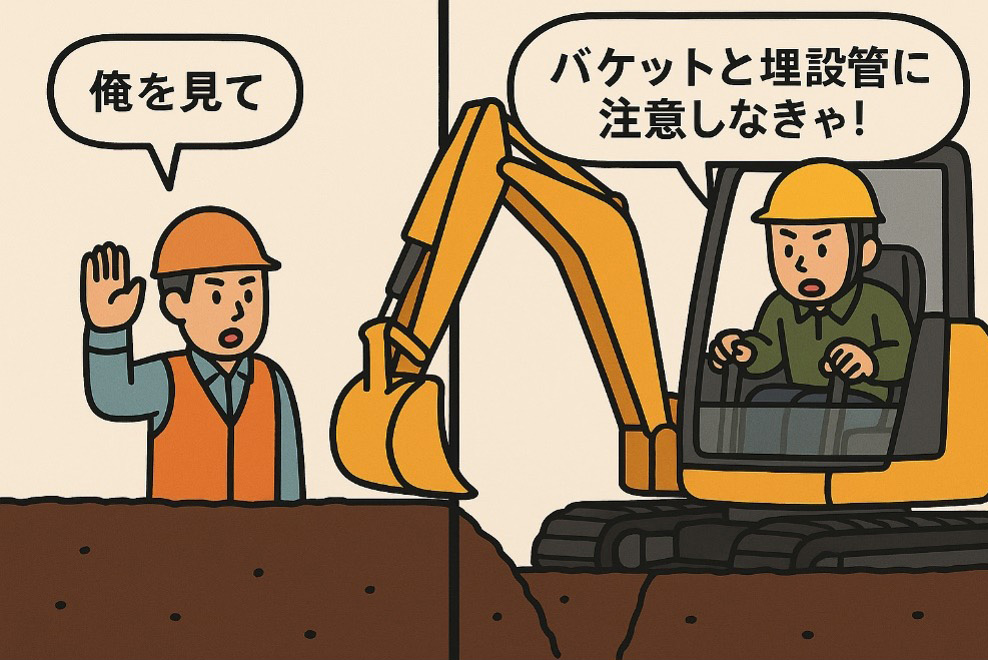 視線分析で学ぶ重機操作の極意①:オペレーターは合図者を見ていない?