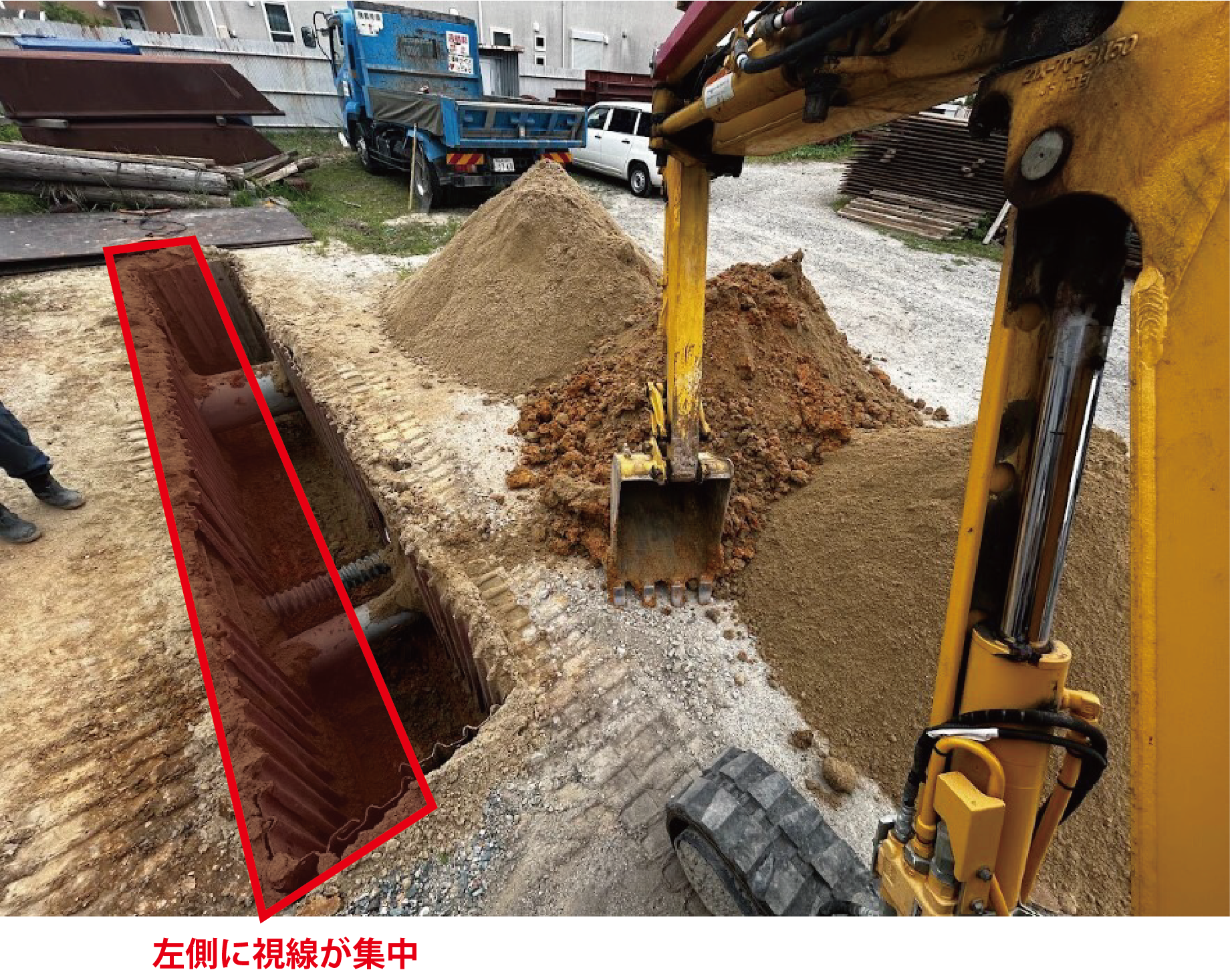 もちろん、左側の縁を見ながら掘削を行うことが唯一の方法ではなく、別の熟練オペレーターの分析では左側に注視箇所が集中しないこともわかっており、あくまでも今回の被験者が左側を中心に考えるタイプであったというだけです。