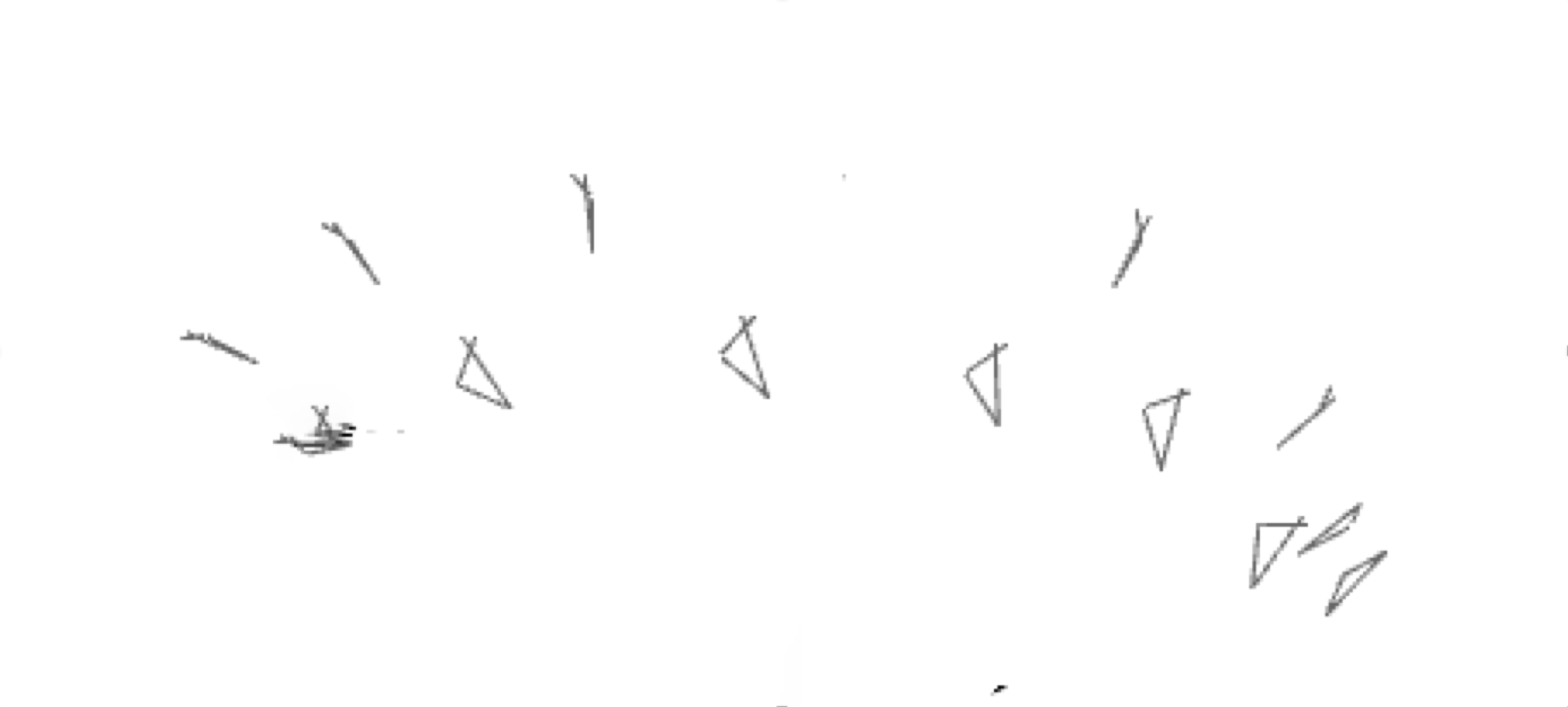作業者を天井から見下ろす位置を視点(カメラ位置)とした三角形の軌跡は以下のようになります。
